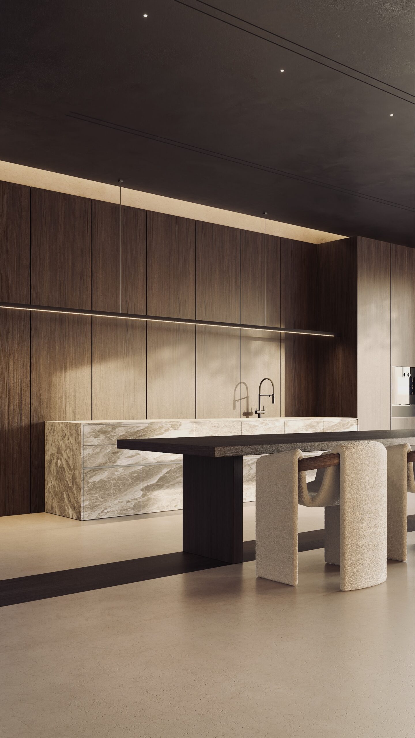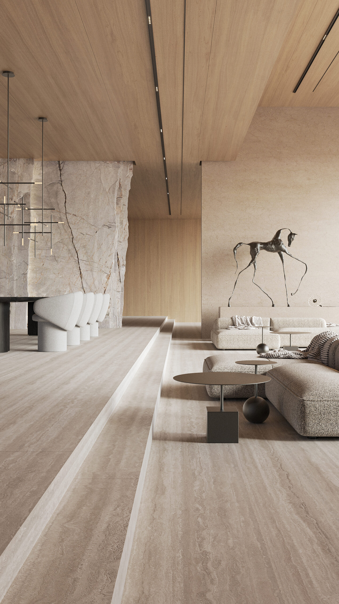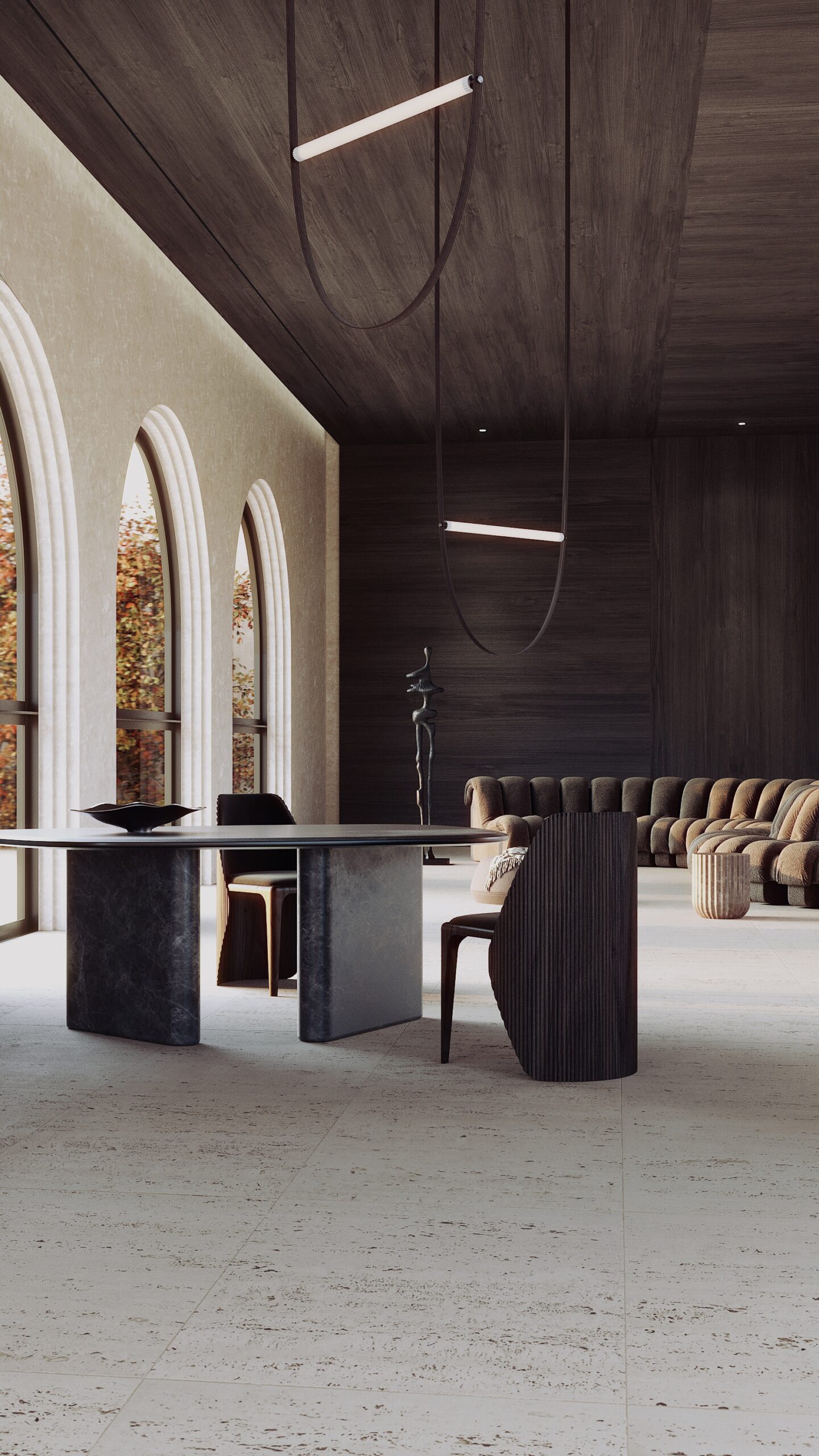 THE OVERALL DESIGN ACHIEVES A HARMONIOUS BALANCE BETWEEN SOPHISTICATION, OPENNESS, AND THE TIMELESS APPEAL OF NATURAL MATERIALS.