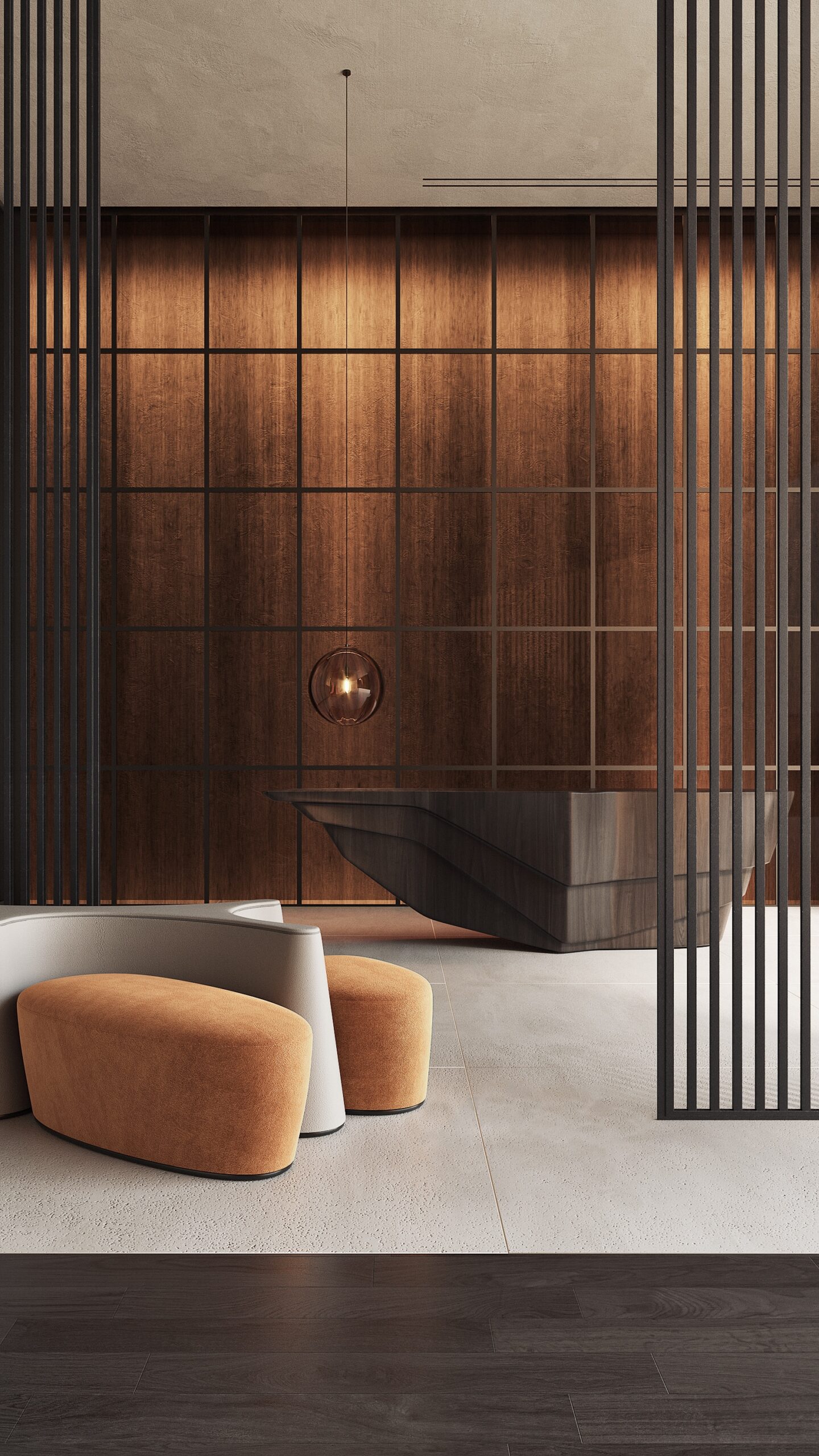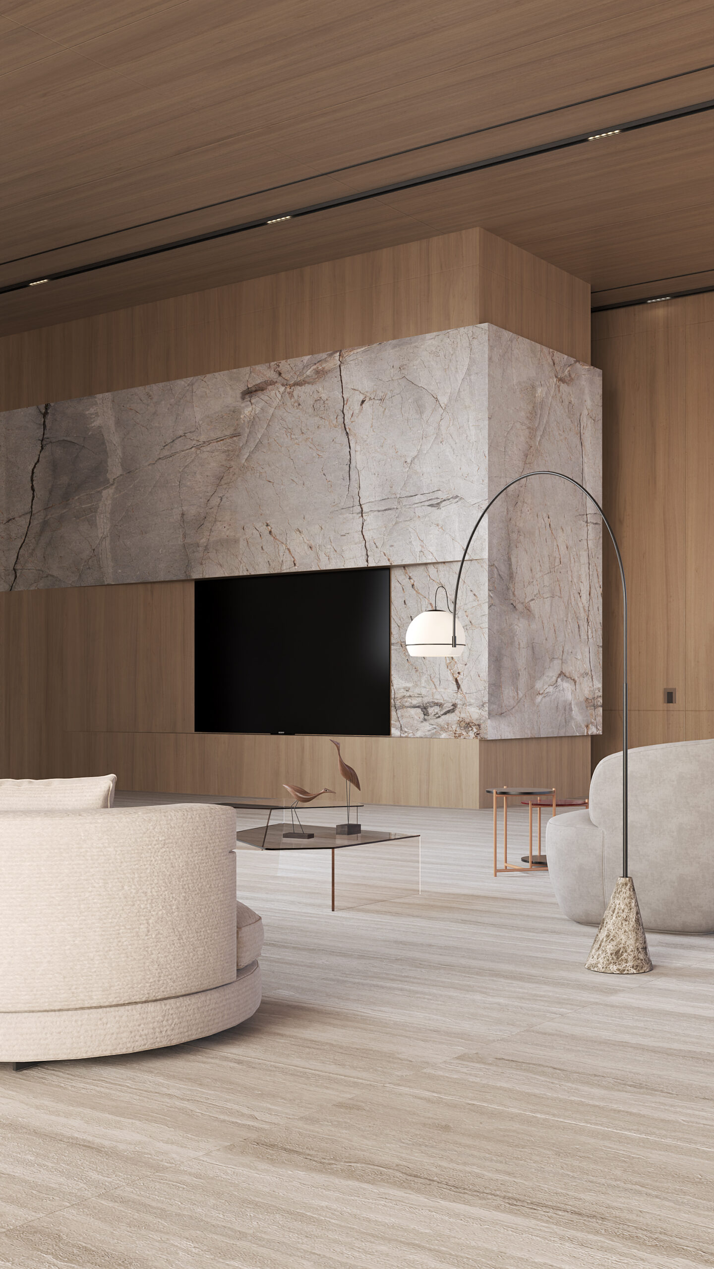 ELEGANCE. WARM WOODEN PANELS SOFTEN THE GRANDEUR, CREATING A REFINED BALANCE BETWEEN SOPHISTICATION AND COMFORT.