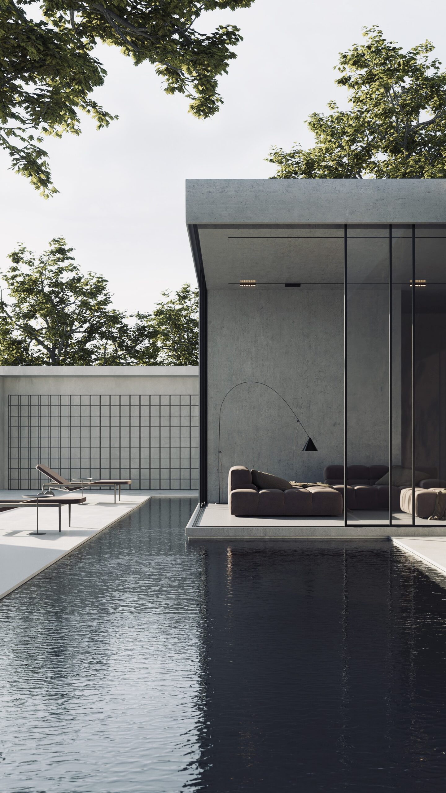 A MODERN VILLA IN NICOSIA IS DEFINED BY CLEAN ARCHITECTURAL LINES AND SMOOTH CONCRETE FINISHES THAT GIVE THE HOME A CONTEMPORARY, SCULPTURAL PRESENCE. THE LIVING ROOM OPENS DIRECTLY TOWARD A SLEEK POOL, CREATING A STRONG VISUAL CONNECTION BETWEEN INTERIOR AND EXTERIOR AND ALLOWING NATURAL LIGHT TO FLOOD THE SPACE.
